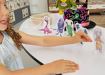 In the classroom setting, and during the 10 Day Speech Sound Play Plan, we start with just six because these lead into the pictures of the sounds, the first graphemes s a t p i n ( IPA phonetic symbols s æ t p ɪ n show the sound value) they will learn within the phonics programme. Their names are mapped, so the children see those, and they watch the 2 Minute Monster video daily. They tend to learn all of the Monster Sounds in about two to three weeks in Reception. They love them, so they’re motivated to learn, and the activities are multisensory.